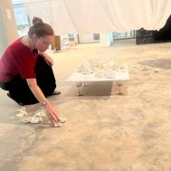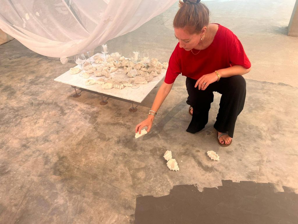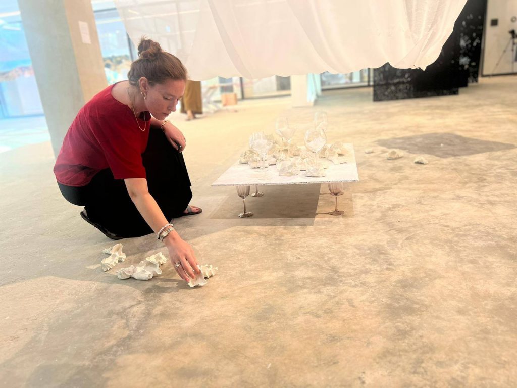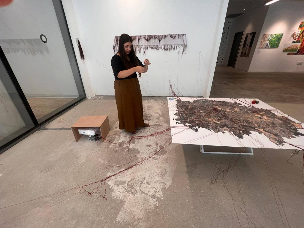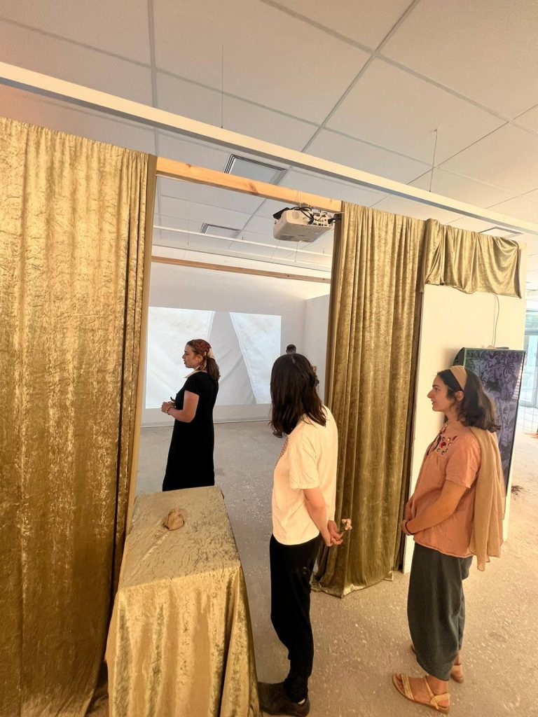 התערוכה ״נקודת ציון״ הגיעה לסיומה ביום ראשון האחרון והבוגרות בחרו לציין את האירוע במיצגים קטנים ויפים שהיו מעין טקסי פרידה מהתערוכה. אלומה גיאת בחרה להוסיף חלק חדש מגילה המצויירת ולעבוד עליו בזמם אמת, אלישבע מימון החלה לחבר בין חוטי המפה שלה וקירות החלל ובין חלקי המיצב שלאט לאט מילאו את החלל, שירה יחיא ישבה על המיטה במיצב שלה וכתבה ביומן תוך שהיא שומעת את ההקלטה של עצמה הלוך ושוב, שירה גימני הציעה כיוון חדש של קריאה בקווי כף היד- רישום של הקווים מהיד אל הנייר בהשראת הרישום האדמוני שלה, עדן ברש נכנסה אל מאחורי הפרגוד- וילון בכניסה לחלל שלה ויצרה מעין תיאטרון שבו רב הנסתר על הגלוי, אבישג אלבו התלבשה בגלימת הרב הראשי של סבה וצעדה לאורך ולרוחב החלל המסומן שלה, דליה פרידמן הורידה בעדינות את הקונכיות המפוסלות שלה מהמגש אל הרצפה ונטע נמיר המשיכה להדביק נצנוצים של סימוני אור-חושך על הקיר.