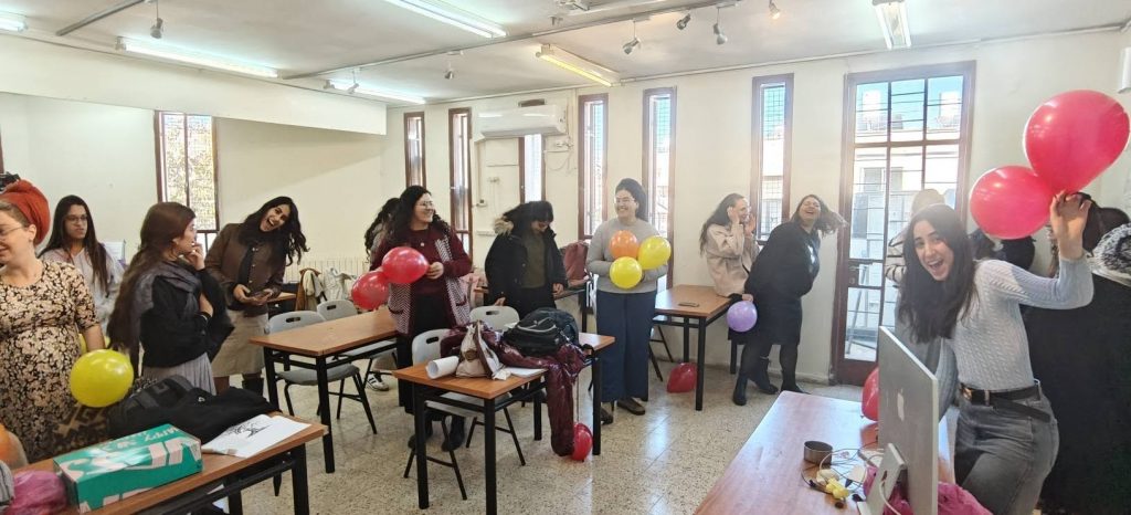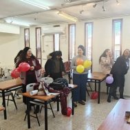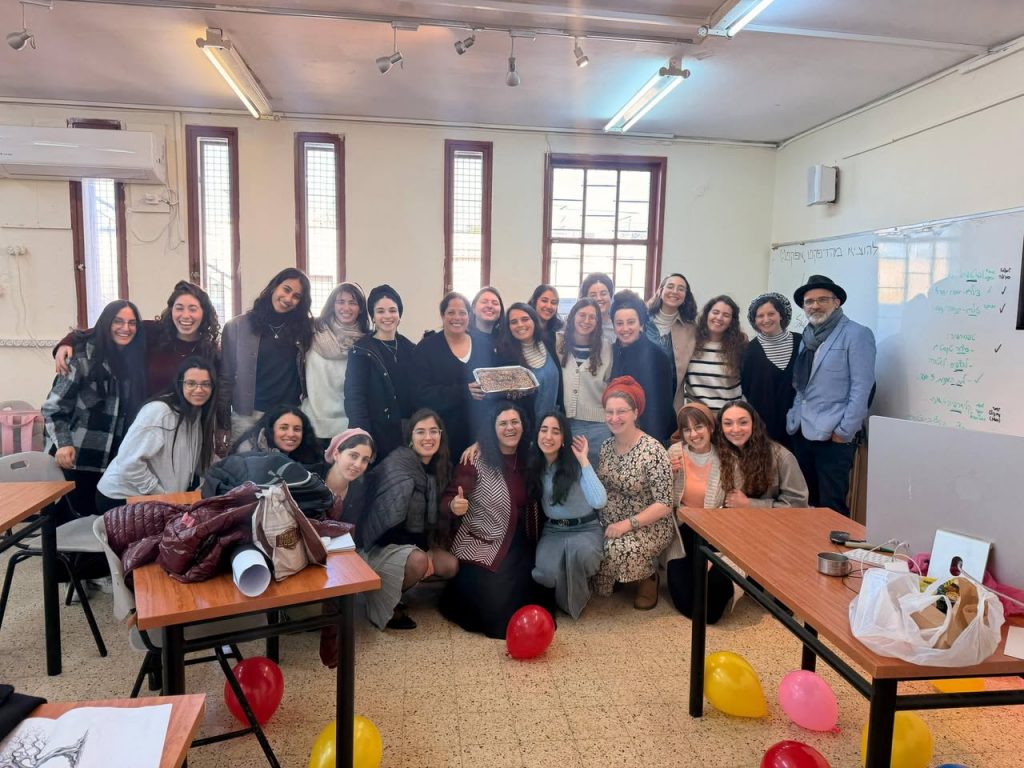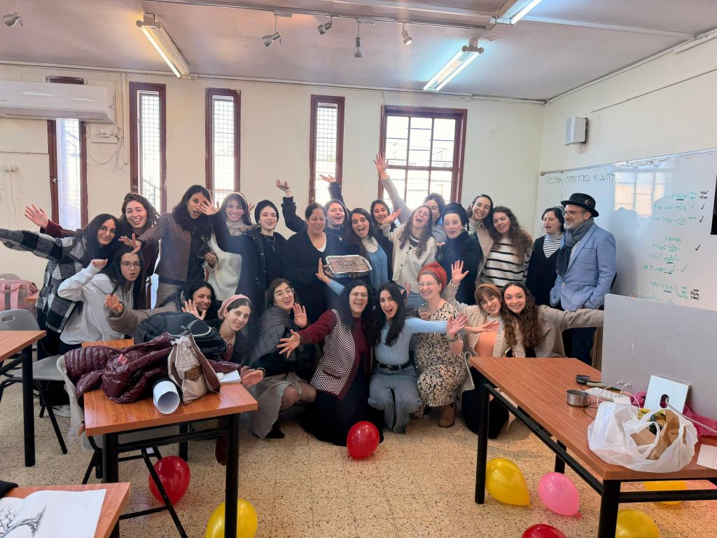 היום הסטודנטיות מכל המחלקה לתקשורת חזותית התכנסו כדי לחגוג יום הולדת הפתעה לשילת מזרחי